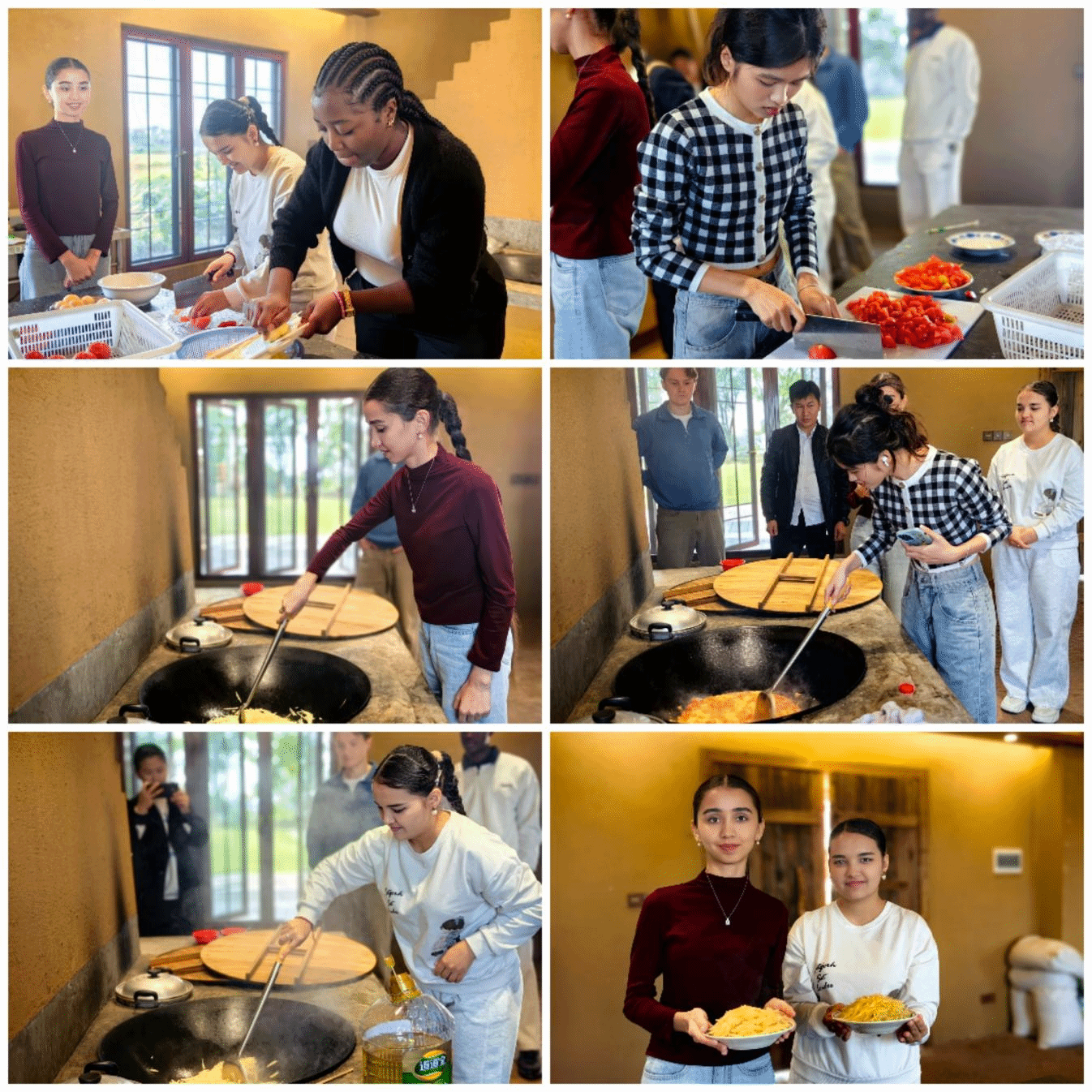 实践营不仅是一场生态知识的盛宴,更是一次深入中国社会肌理的文化之旅。活动特别设置了中华厨艺体验环节,在老乡的指导下,留学生们亲手制作了经典菜肴“西红柿炒蛋”和“酸辣土豆丝”。从洗菜、切菜到翻炒,现场香气四溢,欢声笑语不断。