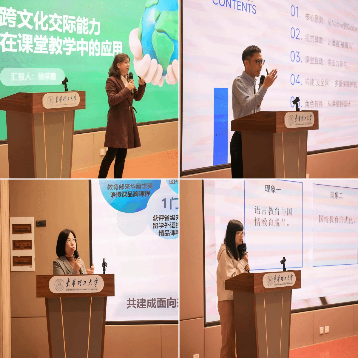 徐采霞教授以“跨文化交际能力在课堂教学中的应用”为题,深入分析了如何化解文化差异带来的教学障碍,营造开放包容、高效互动的课堂氛围。阳江萍老师围绕“全英文授课的技巧与艺术”,分享了如何通过优化语言表达、开展课堂有效互动及实地参访体验等手段,切实提升面向来华留学生相关课程的授课质量。宋文杰结合我校来华留学全英文授课体系建设实践,围绕“为何建、建什么、如何建、如何用”四个问题,系统阐释了地方高校来华留学全英文授课体系建设的动因、内容、目标和价值,为兄弟高校提供了有益借鉴。雷曦博士则结合多年一线汉语和中国概况课程教学经验,分享了将汉语教学与国情教育深度融合的策略与方法。四位教师的分享内容翔实、紧密结合实践,引发了与会者的广泛共鸣和认同。
