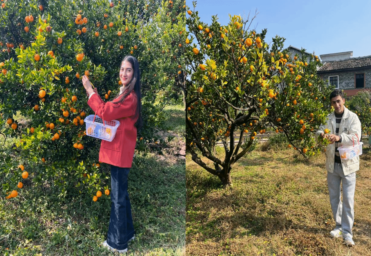 在产业走访环节,留学生们先后参观了江西桔花香食品有限公司、聚福堂农业发展有限公司及南丰星家园果业有限公司,深入了解蜜桔在深加工、品牌打造、电商销售等方面的创新实践,感受南丰以“小蜜桔”推动“大产业”的发展活力。此外,交流团还到访了古朴宁静的洽湾船型古镇,行走在错落有致的建筑中,捕捉南丰自然与人文相融的和谐风貌。我校巴基斯坦籍学生TAYYABA YOUSAF(中文名:唐贝)在游览古镇时感慨到:“这里的蜜桔好甜,古镇也好美,以后我们还要来一趟,穿着汉服和我们的民族服饰来打卡留念!”