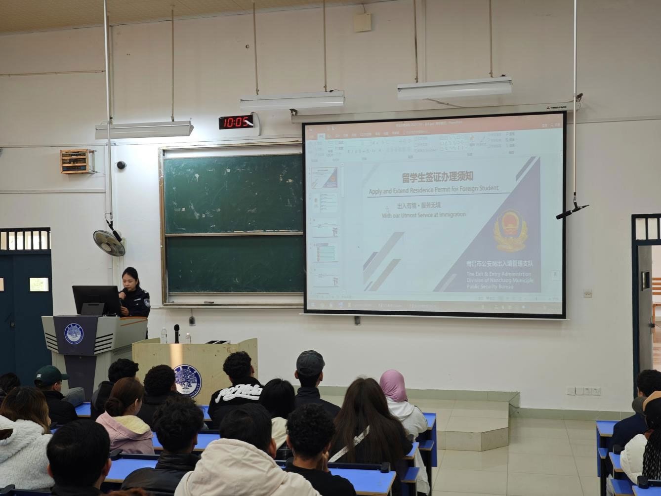 12月12日上午,南昌市公安局出入境管理支队支队长杨邵华、副支队长熊振贤一行来校开展“送教上门”活动,并就我校留学生管理工作进行调研座谈。国际教育学院党委书记黄晓红、副院长林夏及留学生辅导员代表参与接待。