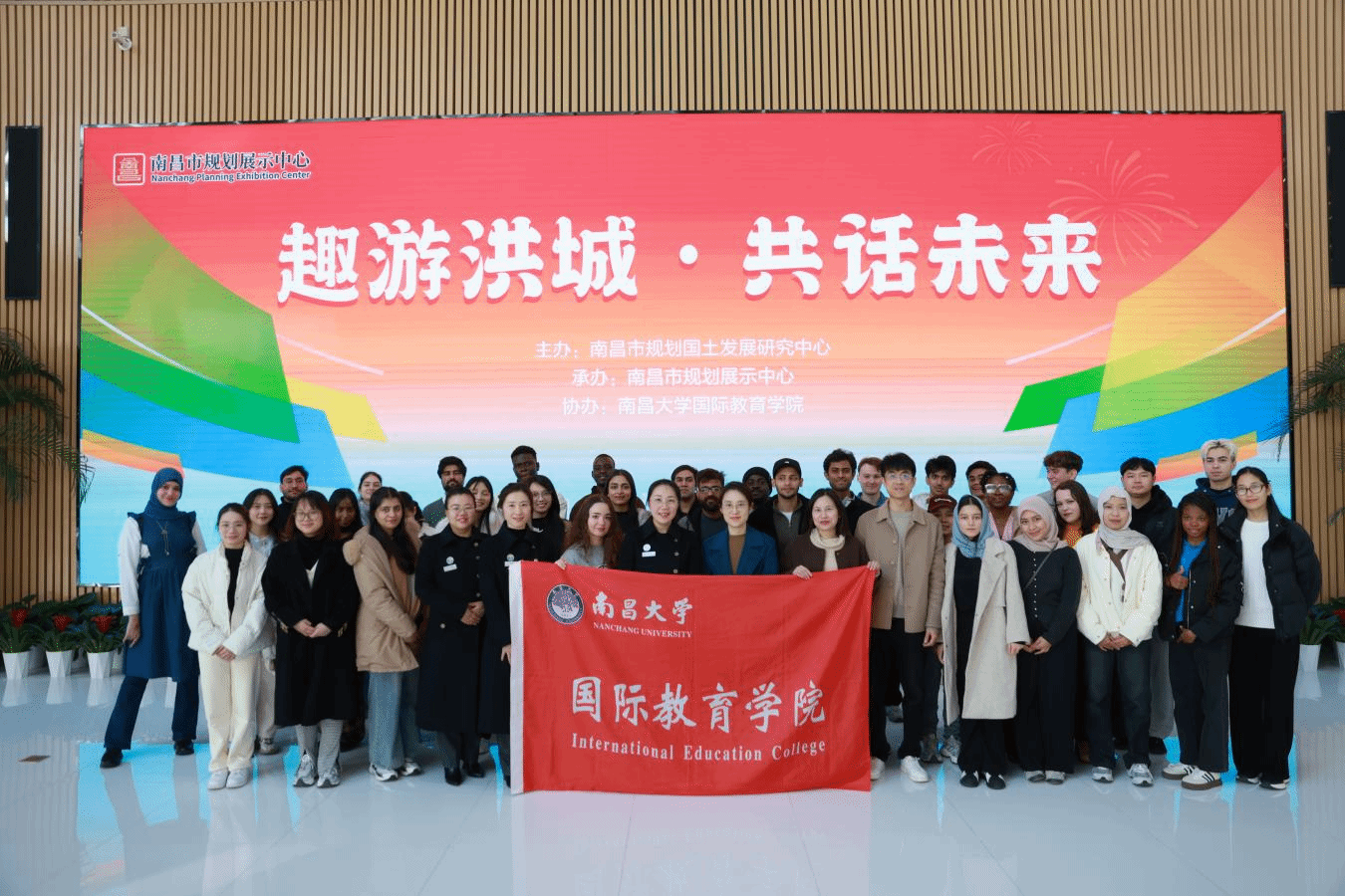 2026年1月13日,南昌大学国际教育学院组织来自巴基斯坦、越南、俄罗斯、印度尼西亚、法国、意大利、土库曼斯坦、摩洛哥、蒙古、埃及、泰国等15个国家的32名留学生,赴南昌市规划展示中心开展“趣游洪城·共话未来”国情教育实践活动,并共同建立“来华留学生中国国情教育实践基地”,各国学子在活动中深入感知南昌历史文脉与发展活力。
