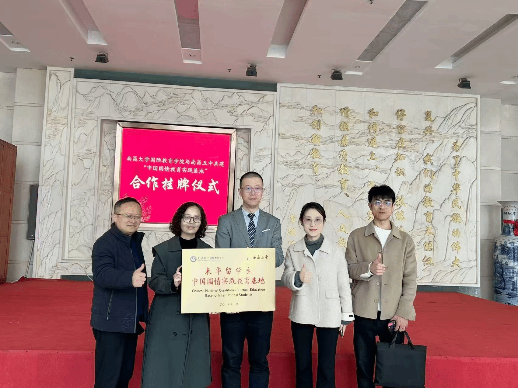 1月16日上午,南昌大学国际教育学院与南昌五中合作共建的来华留学生“中国国情教育实践基地”挂牌仪式在南昌五中顺利举行。这标志着两校在国际教育与跨文化交流方面的合作迈入常态化、实质化的新阶段。
