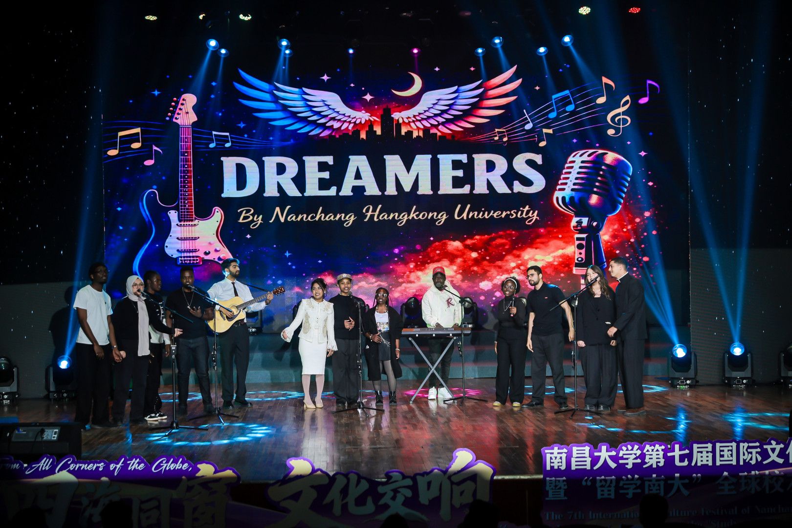 文艺展演环节亮点纷呈。啦啦操《青春同频》、歌曲串烧《一路生花》展现青春风采与成长希望;情景剧《越千年・语东西》创意搭建文化桥梁;舞蹈串烧《美美与共》融合多国风情,诠释“各美其美,美美与共”的内涵。南昌航空大学“一带一路”乐团的《Dreamers》、江西财经大学演绎的《I will always love you》,彰显音乐无国界的魅力。多语种祝福视频《心愿》传递温馨祝愿,三轮抽奖环节持续点燃现场气氛。