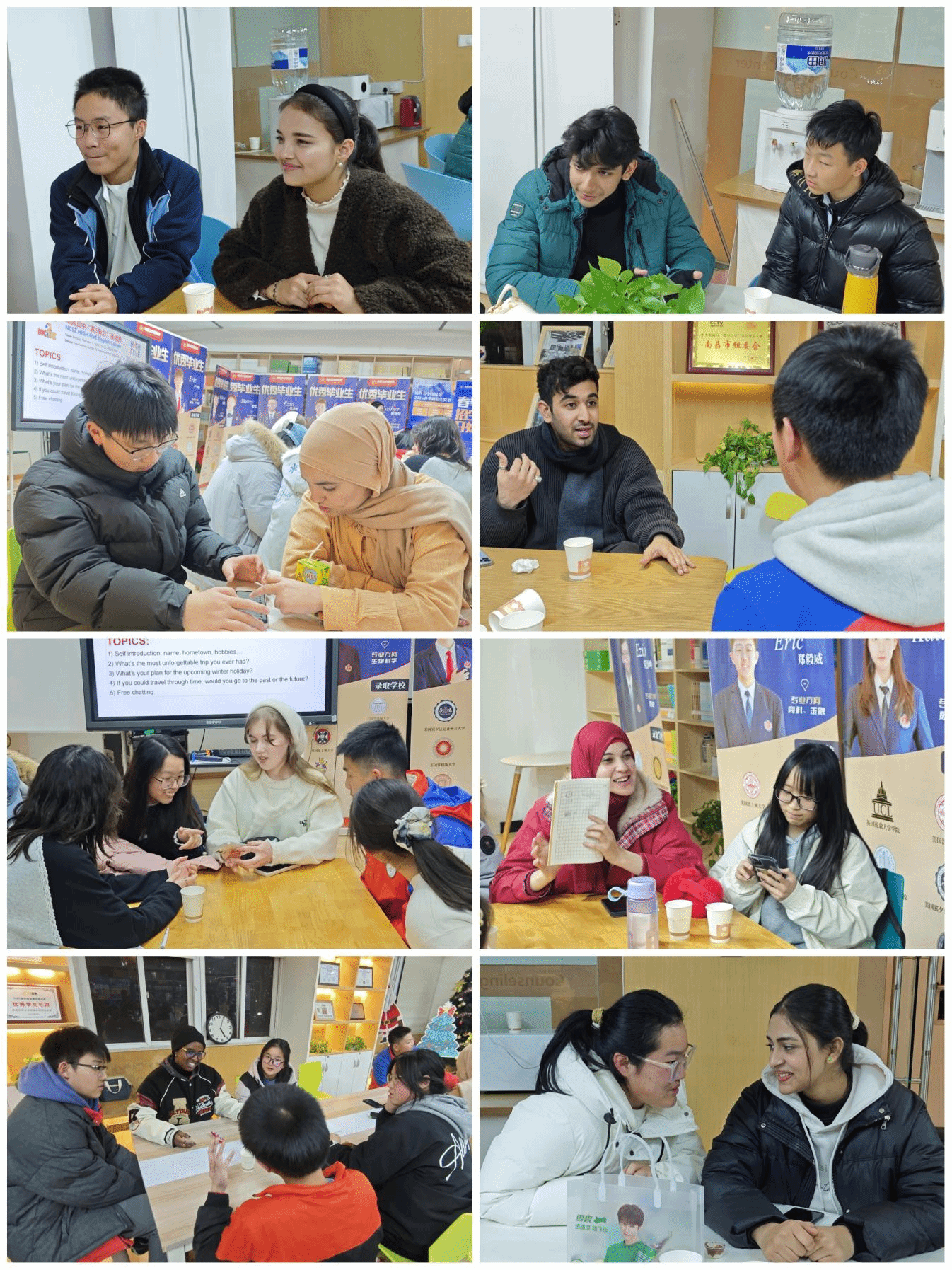 自由交流环节将活动推向高潮。中外学子围绕“兴趣爱好”“难忘旅程”“寒假计划”等话题展开热烈讨论。笑声与掌声此起彼伏,不同语言与文化在对话中碰撞交融,现场成为一片温暖而开放的国际交流天地。