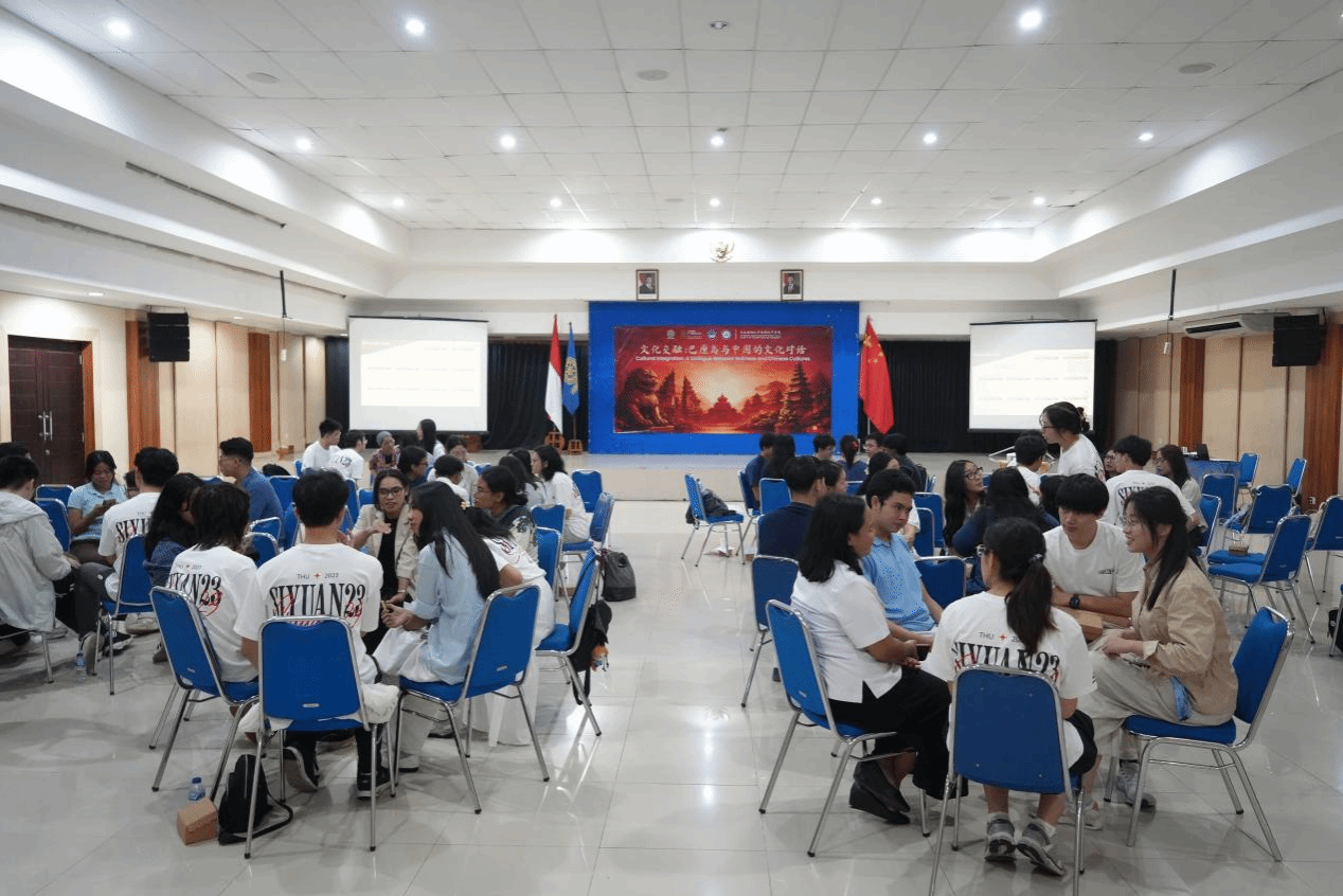 在交流环节中,中印尼两国青年就文化交流互鉴开展了深入对话。清华大学学生代表用英文进行了两场演讲,展现了中国青年的学术素养与国际表达力。随后,两国青年分成十个小组,围绕语言学习、文化认知与职业发展等话题展开了热烈讨论。清华学生询问印尼学生选择学习中文的契机、日常生活中接触的中国元素、当地社会对中国企业的看法,以及未来赴华或在中资机构发展的意愿。印尼学生则十分关心关于前往中国留学的途径、传统中国文化如何拥抱现代文明、清华大学的学术环境与研究领域,以及当代青年应具备的跨文化能力等问题。活动结束后,两国学生均表示此次交流有助于增进相互了解,并在学术视野与文化认知方面获得了新的启发。