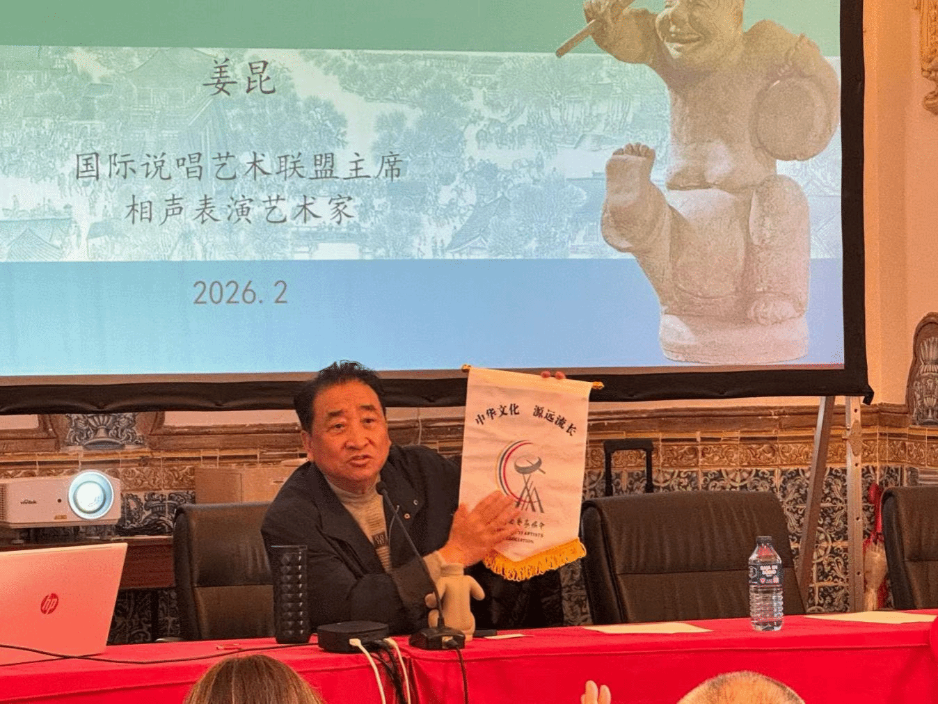 活动在卡斯大学孔子学院外方院长海梅(Jaime Moraleda Moraleda)、中方院长徐海燕的致欢迎辞中拉开序幕。随后,国际说唱艺术联盟主席、中国曲艺家协会原主席、著名相声表演艺术家姜昆带来题为《中国的曲艺:历史与现代》的专题讲座。讲座围绕中国曲艺的发展脉络、艺术特征及当代传播展开,并结合多媒体资料,深入介绍曲艺作为中国重要语言艺术门类的文化价值与舞台魅力,帮助西班牙观众更直观地理解这一历史悠久的艺术形式。