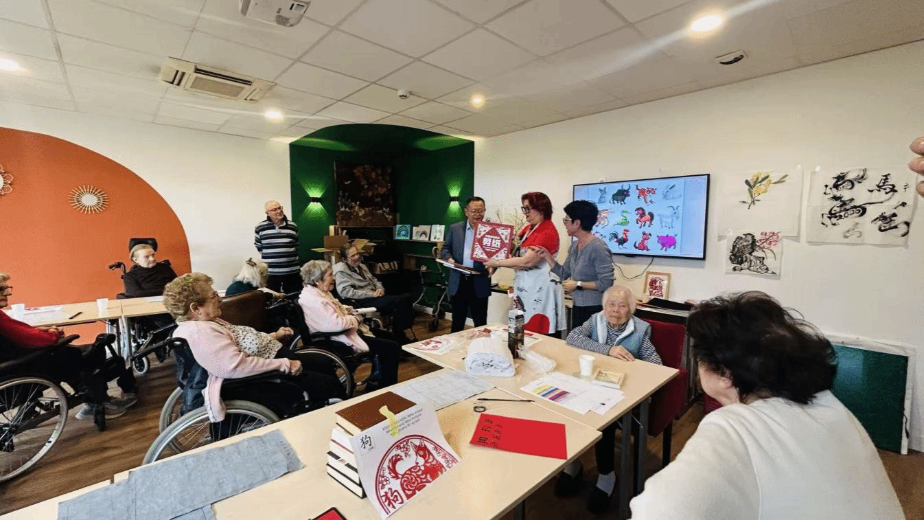 近日,应卡米尔花园养老院负责人瓦莱丽·纳丹(Valérie NADIN)女士邀请,我校法国普瓦提埃孔子学院走进该机构,举办“欢乐中国年”主题文化活动,与养老院长者共度温馨祥和的新春时光。