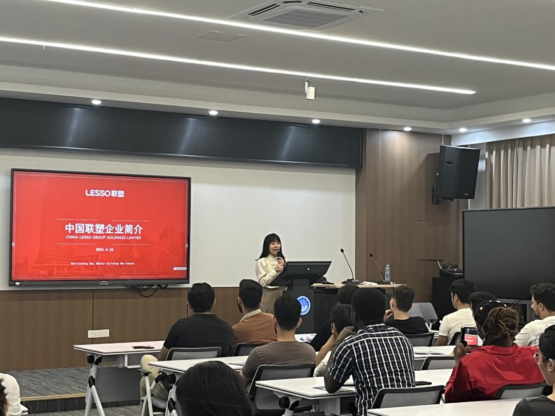 4月24日,中国联塑集团一行七人来我院交流,并针对我院留学生与外国语学院毕业生开展了一场校园招聘宣讲会。我院副院长李俊、外国语学院副院长刘炎祁及相关工作人员出席交流会,近百名留学生参加企业宣讲会。