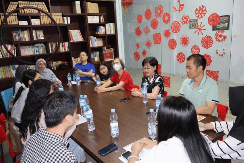 在交流环节,为帮助新任教师尽快熟悉孔院,了解孔院教师的工作分工,与会教师逐一介绍了各自负责的具体工作。曾参与中苏拉威西省莫罗瓦利市德信公司中文培训项目的三位教师,分享了工作成果与心得体会。他们详细介绍了在企业中文培训中的课程设计、教学难点及教学反馈,总结了项目执行中的经验,为孔院未来拓展类似合作提供了宝贵参考。