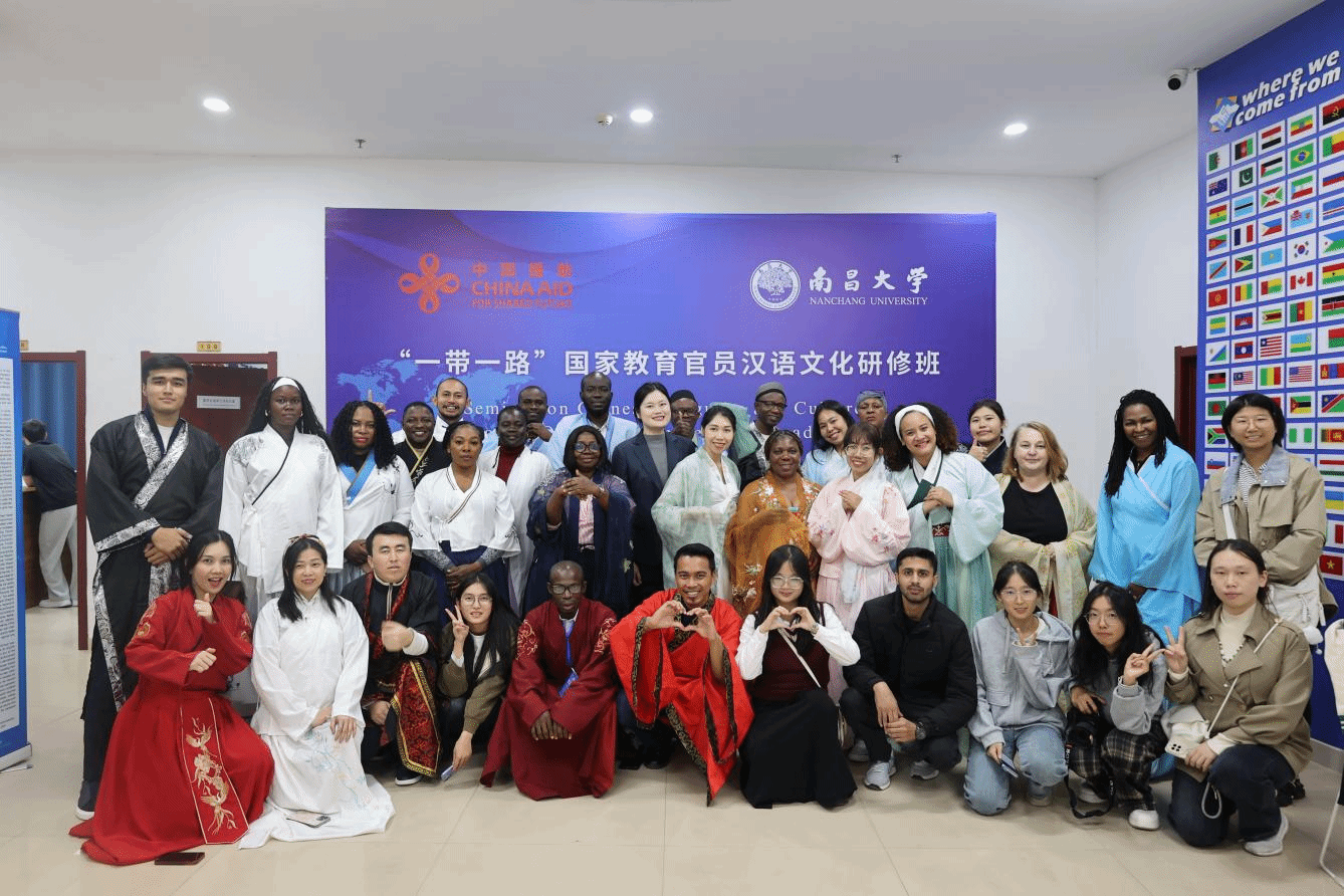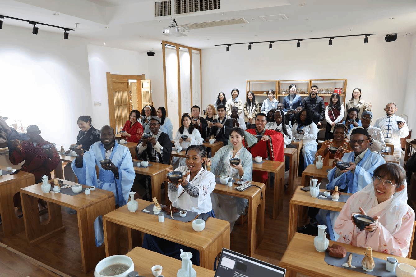 2025年10月23日下午,南昌大学旅游学院茶艺室内茶香氤氲,在旅游学院徐雅雯老师的带领下,“一带一路”国家教育官员汉语文化研修班的学员们身着汉服,开始了一场别开生面的茶文化深度体验。