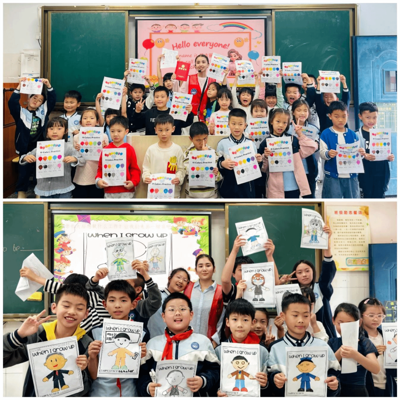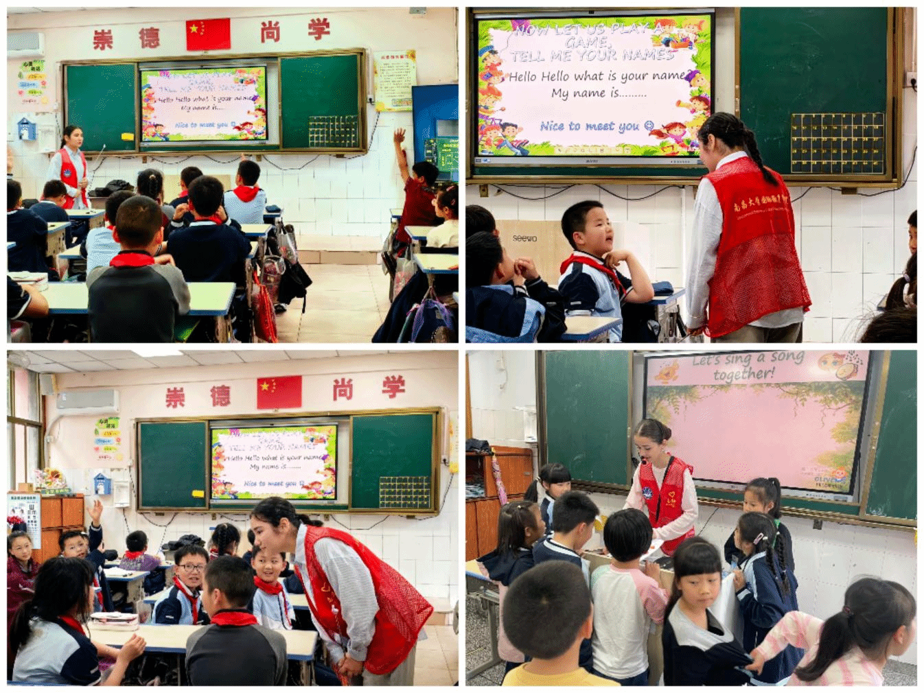活动前期,每位志愿者投入大量时间备课,精心打磨课件、设计互动游戏、模拟课堂对话。他们满怀对中国孩子的期待,同时也难掩初次站上讲台的紧张与忐忑。当看到几十双惊喜又渴望的眼睛齐刷刷望过来,稚嫩的“Hello!”此起彼伏时,热情的问候瞬间消融了所有不安。孩子们纯真的笑容如同一束光,照亮了志愿者的心。