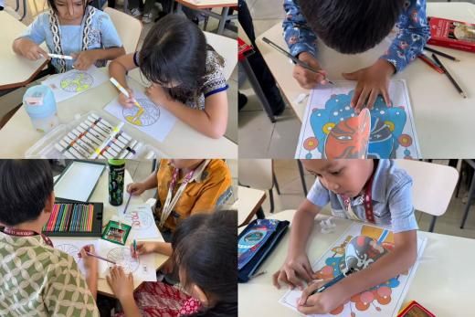 在“脸谱DIY”活动中,何仪老师借助视频和图文资料,生动讲解不同京剧脸谱所代表的人物性格与文化内涵。随后,学生们自主设计并绘制出独具个性的脸谱作品。一个个妙趣横生的创意作品,既充分展现了学生们的艺术才华,也让大家在动手实践中加深了对中国戏曲文化的认知与理解。