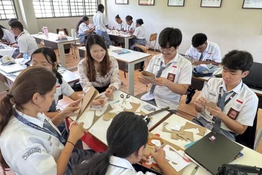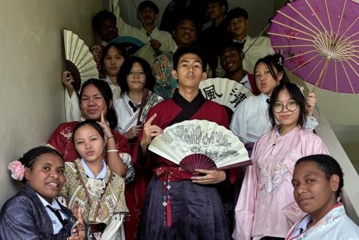 2026年4月16日,为迎接国际中文日,哈山努丁大学孔子学院罗肯中学教学点举办了以“中文:点亮多彩梦想”为主题的系列文化体验活动。活动涵盖甲骨文装饰、剪纸与汉服体验、脸谱DIY等多个环节,形式新颖、内容多元,让学生在趣味盎然的体验中领略中华优秀传统文化底蕴,在实践互动中轻松习得中文、感受中文魅力。