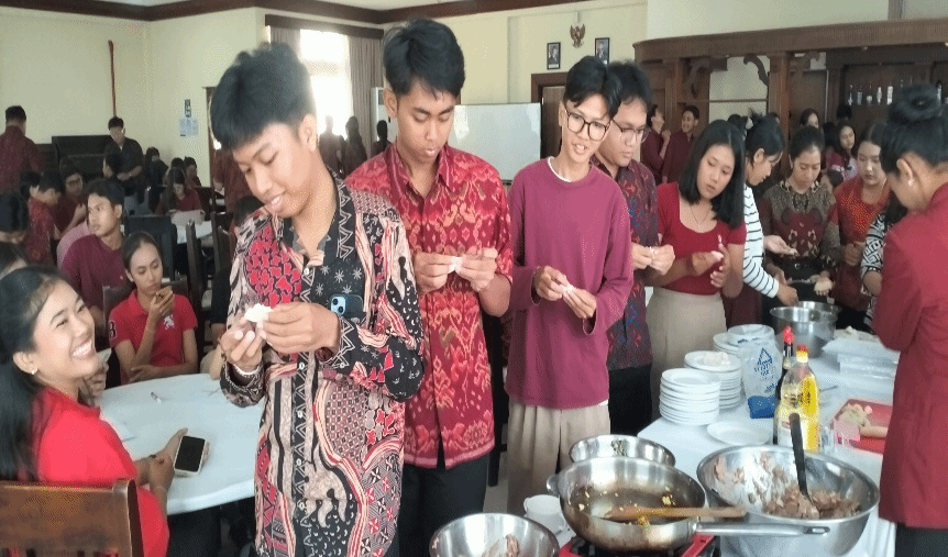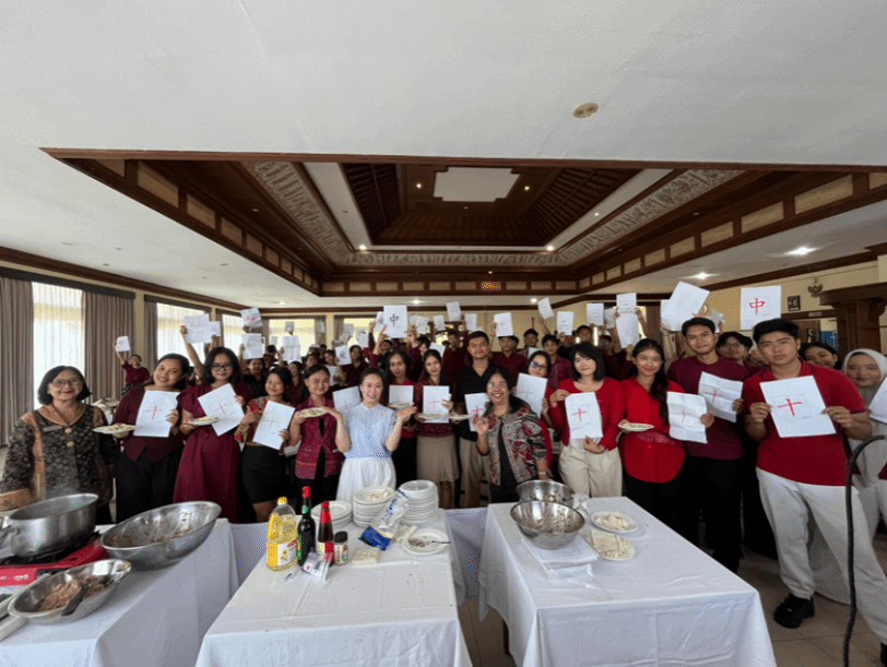 巴厘旅游理工学院教学点的活动兼具趣味性与实用性,170余名师生踊跃参与,不仅亲手书写汉字,体验了包饺子,学唱了经典中文歌曲,还模拟旅游服务场景中文对话,将语言学习与专业需求紧密结合,让中文成为助力专业成长的有力工具。